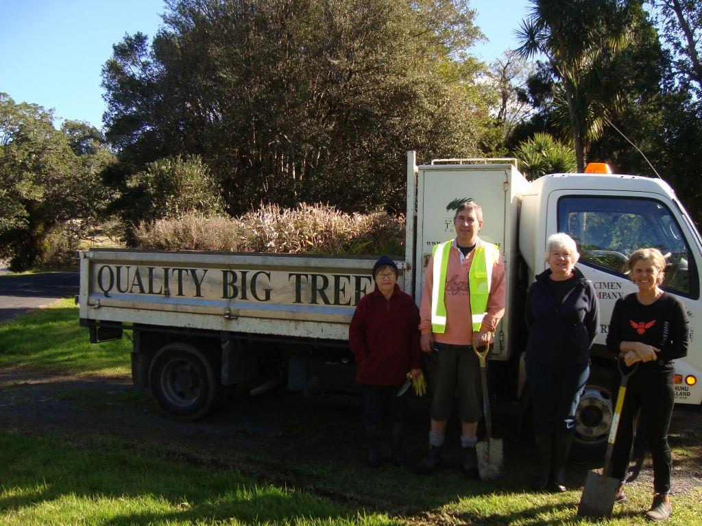 Planting Day: A small group of hardy souls got stuck in and succeeded in planting out some of the old slip sites along Opoutere Rd between the jetty and the YHA. Several hundred plants were purchased with grants from the Department of Conservation and The Honda Tree Fund. Very special thanks to Gordon Ikin who sourced and collected the plants.
