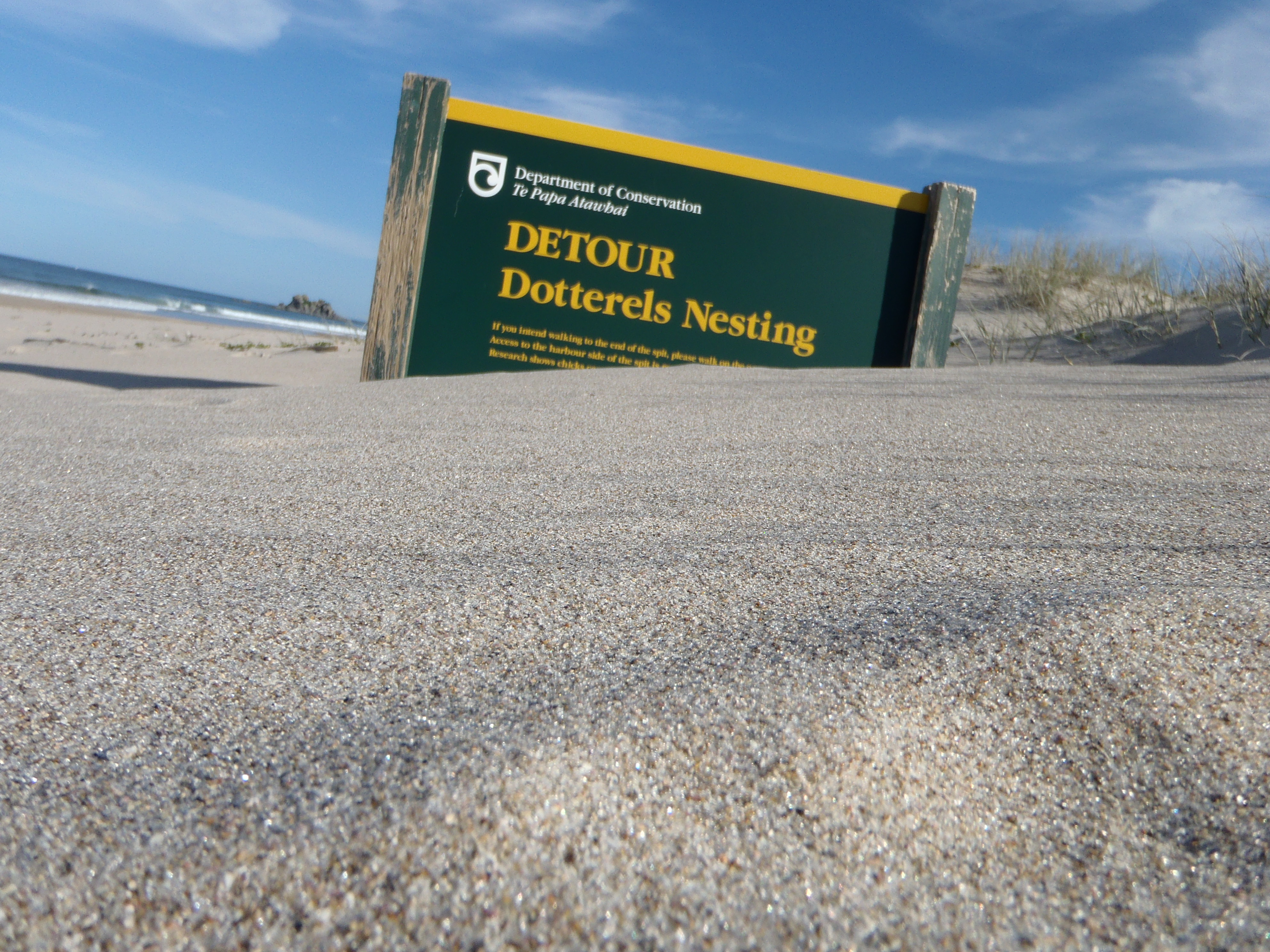 The Department of Conservation send out an officer each year who works cooperatively with the community to manage this precious environment. In addition to this Dotterel Watch is a community program that stations volunteers at the edge of the nesting area at low tide to prevent members of the public from disturbing the birds.